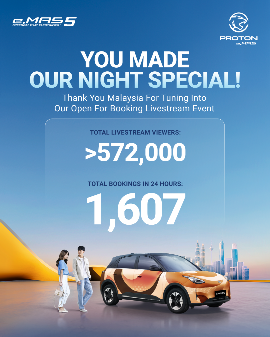 Proton e.MAS 5, Malaysia’s First Affordable EV, Records 1,607 Bookings Within 24 Hours of Opening