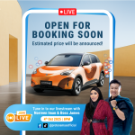 Tune In on 4 October at 8.00pm as We Reveal the Estimate Pricing of Malaysia’s Most Affordable EV as well as Announce Exclusive Early Bird Offers
