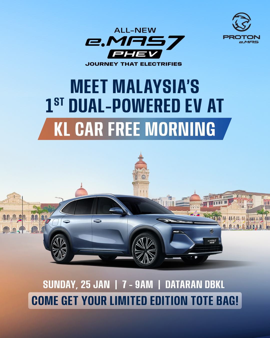 SHAH ALAM, 24 January 2026 – In conjunction with Federal Territory Day, Proton New Energy Technology Sdn Bhd (PRO-NET), a wholly owned subsidiary of national carmaker PROTON, will be showcasing the all-new Proton e.MAS 7 Plug-in Hybrid Electric Vehicle (PHEV) at the DBKL Run & KL Car-Free Morning this Sunday, 25 January 2026.